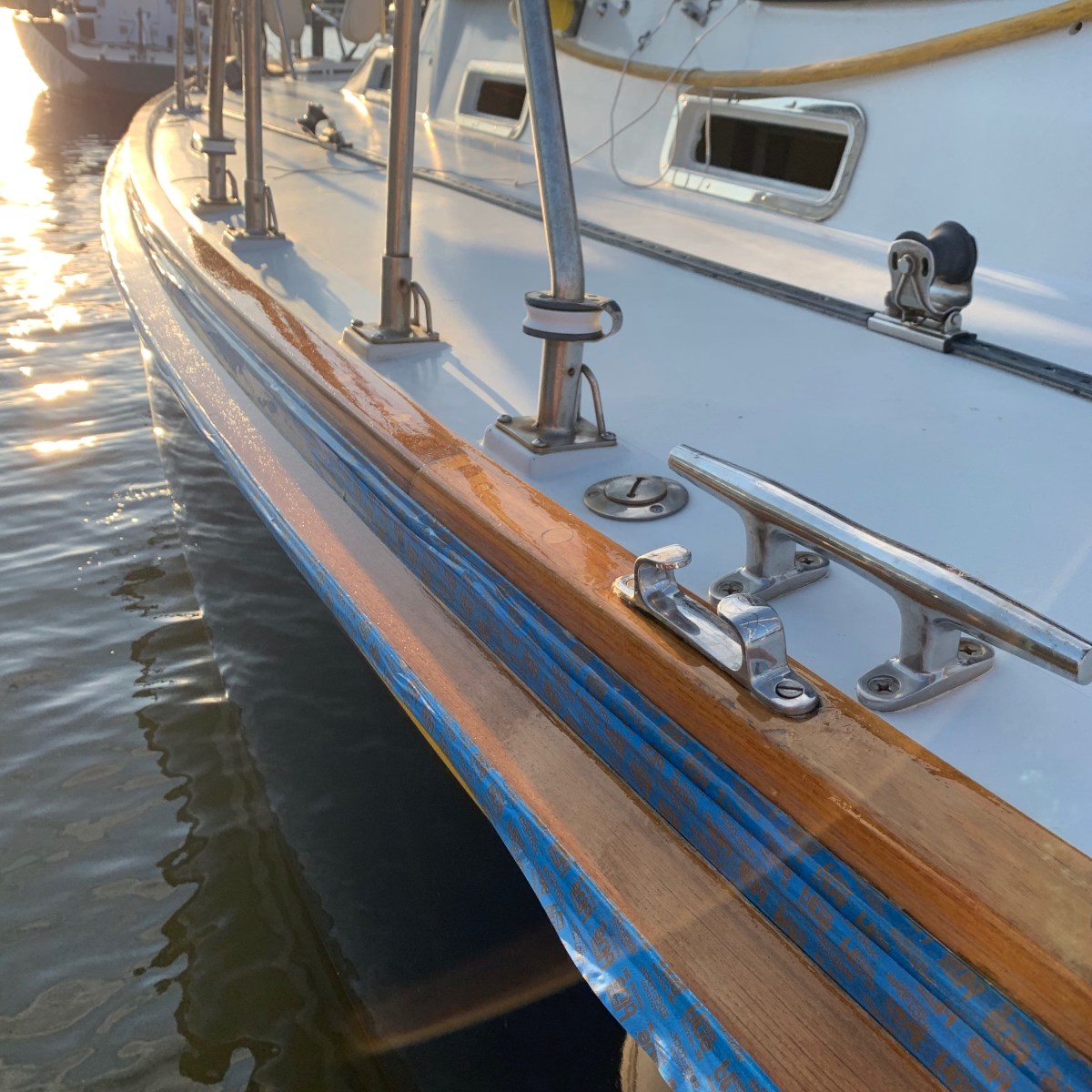 That all said, we made the necessary repairs over the winter as well as bottom and shaft paint, 4 coats of varnish, sail and canvas repairs, some interior refinishing and so on!